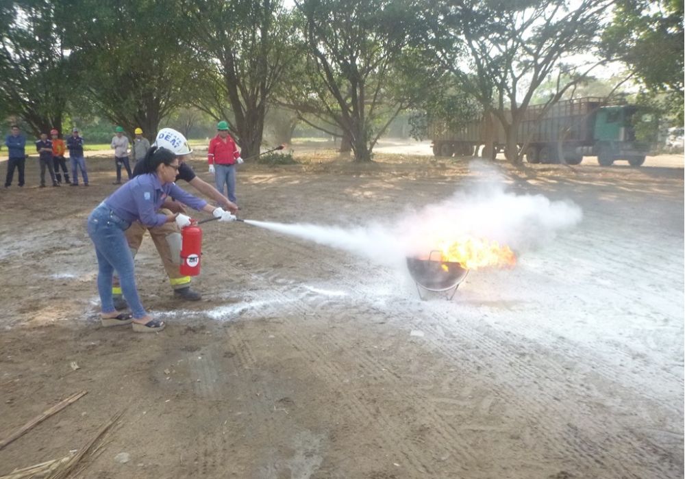 Siguiendo el programa anual de capacitación en temas de Seguridad y Salud en el trabajo (SST) esta vez fue la empresa 'Acontri Consultores" quien tuvo a su cargo tanto la fase teórica como  la práctica para el manejo de extintores,  evento que se desarrolló en las mismas instalaciones del ingenio azucarero (área externa y segura) con la participación de 278  trabajadores entre administrativos y operativos.